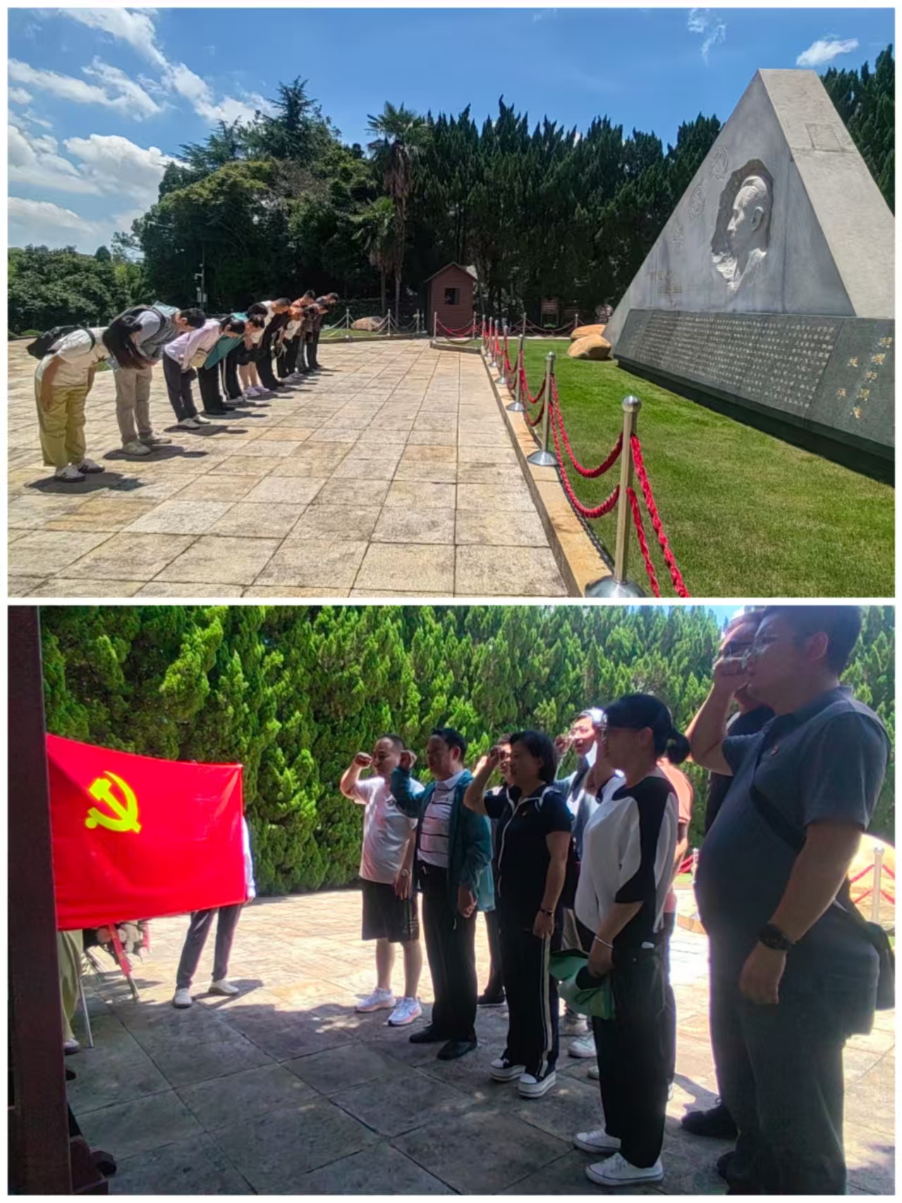 隨后,全體黨員面向黨旗,高舉右拳,重溫入黨誓詞:"我志愿加入中國(guó)共產(chǎn)黨……"鏗鏘誓言回蕩在陵園上空,字字千鈞,進(jìn)一步堅(jiān)定了黨員們?yōu)辄h的事業(yè)奮斗終身的理想信念。